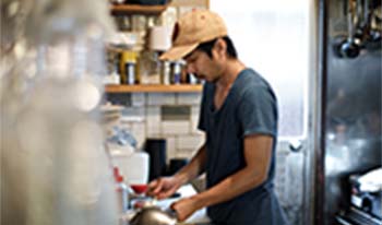 料理人としてのスタートは、ホテルの中にあった中華料理店。その後、ステーキを提供する鉄板焼きの店に転職したのですが、その当時「cafe rob」のオーナーと親しくさせてもらっていたので、毎週のようにお店に遊びに来ていたんです。彼は僕にとって憧れの人でもあったので、「お店手伝ってよ」と声を掛けられた時はうれしくて快諾しました。2年くらい経った頃に、そのオーナーが「cafe rob」を手放すと聞いて、思い出の場所でもあったので、自分に後を継がせてほしいとお願いしてオーナーになりました。