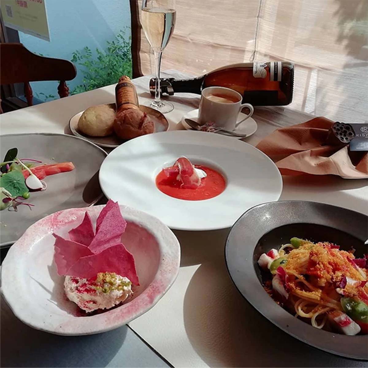 大阪・梅田の人気店「ラ・ビランチャ」でスーシェフ、シェフを務めるなど、多彩なステージで腕をふるってきた和田圭太郎さんが、2017年、故郷にオープンした「KISAKU」。