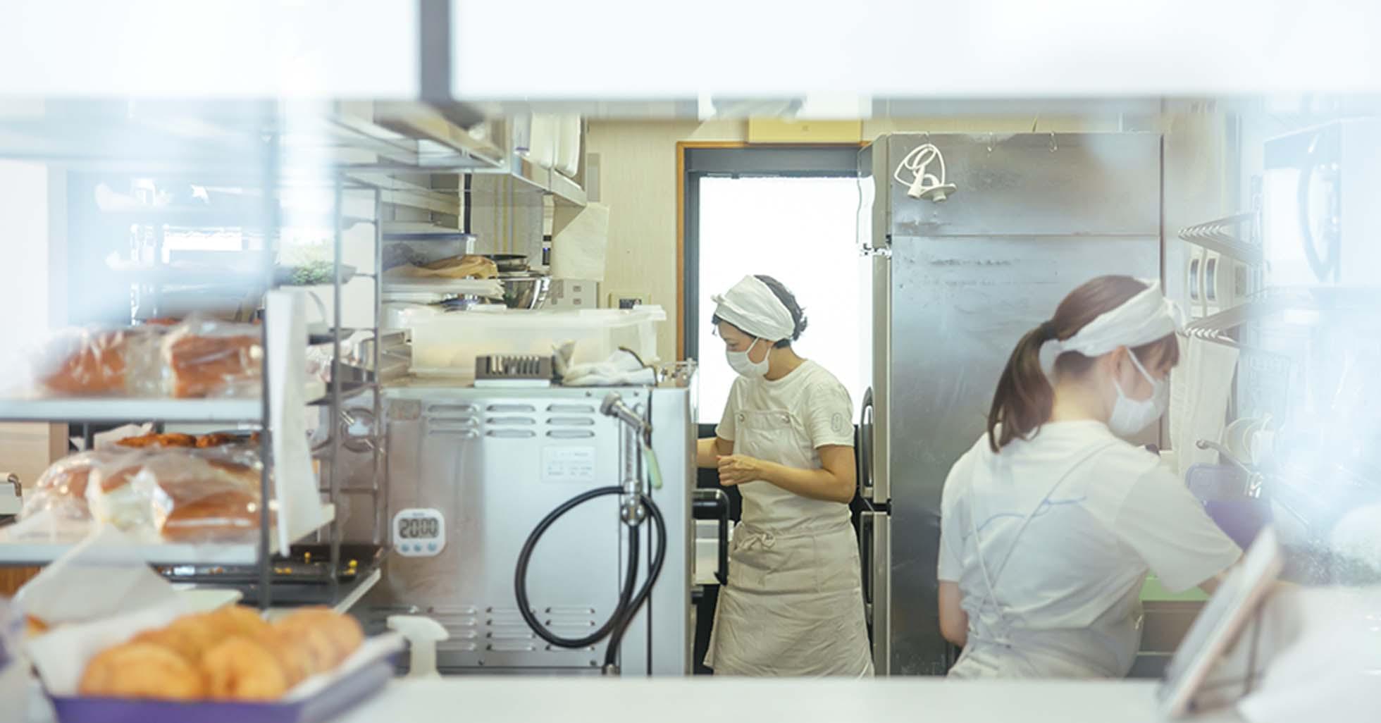 ― 一般的なパン屋さんより、厨房が狭いように感じますが、ここでパン作りをしているのですか?