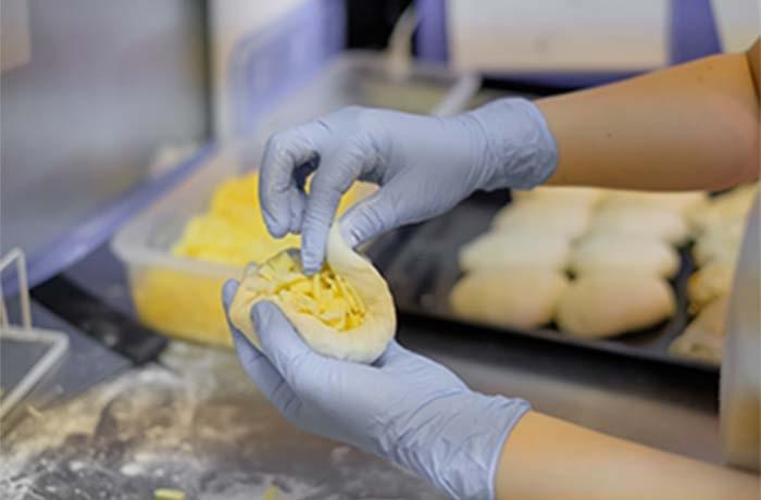 冷凍の生地玉に変えることで、さまざまな利点があります。ミキシングや捏ねの作業を省略できるので、厨房の設備を最小限に抑え、簡略化することができますし、それほどパン作りに精通していないスタッフが製造に携わっても、クオリティの高さを保つことができます。