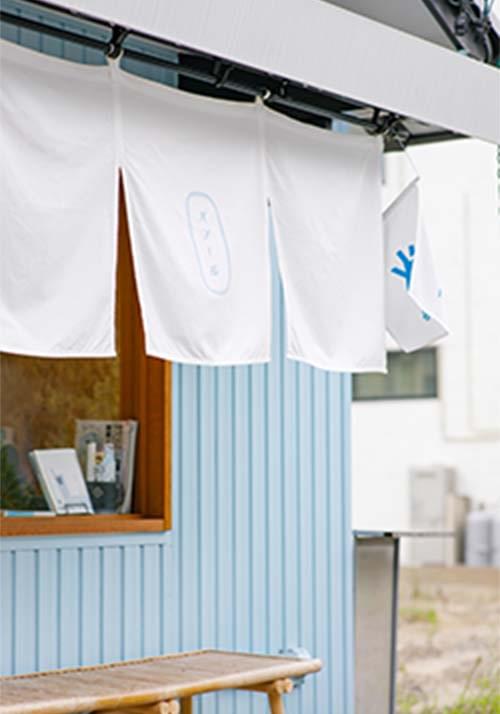 銭湯をイメージした水色の壁と、白い暖簾が目印。ラヴィデュレーヴ仕込みの冷凍生地玉を使い、成形やフィリング、ネーミングなど「バプール」ならではのアイデアを詰め込んで、親しみやすいパンをラインナップ。