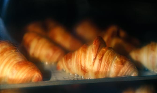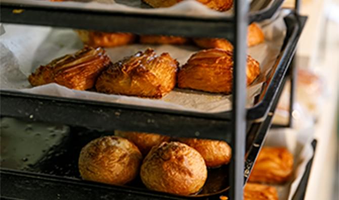 レストランやカフェなどで好評をいただいているのが、リベイク冷凍。8~9割まで焼成した状態で急速冷凍するため、提供する直前に仕上げのリベイクをするだけでOK。パン製造にかかるオペレーションを最小限まで抑えることができます。